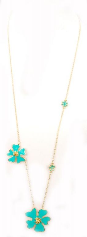 COLLARES CADENA LARGA 3 FLOR ESM AZUL