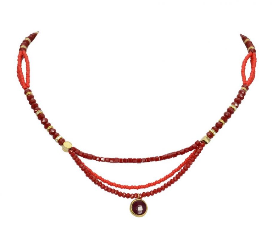COLLAR 3V. COLG. PIEDRA ROJO