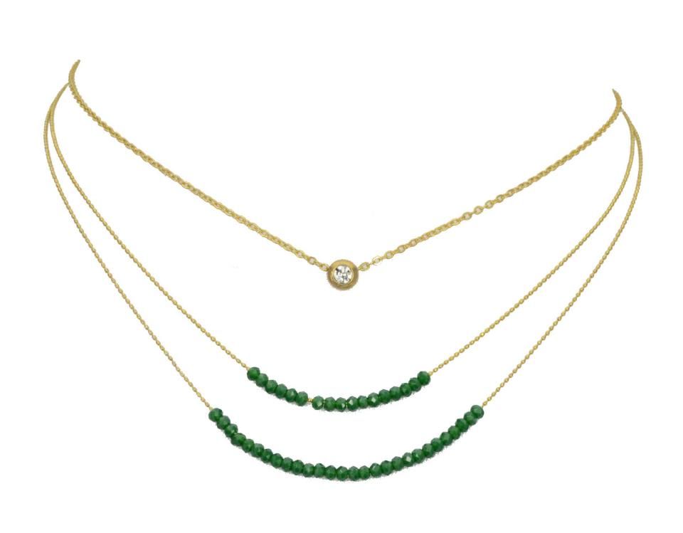 COLLAR CADENA 2V. BEADS+OJO VERDE