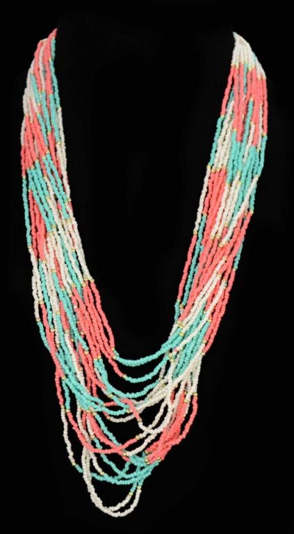 COLLAR LARGO VUELTAS COMBI  CORAL