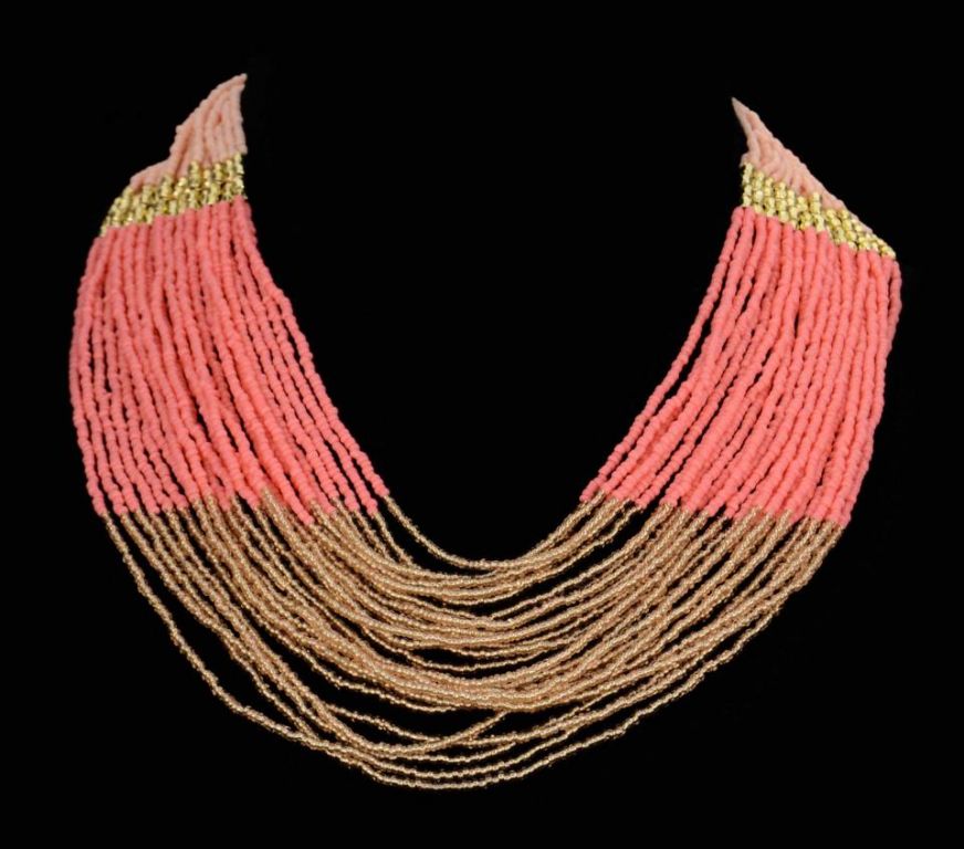 COLLAR BEADS LARG TRABA DOR SALMON
