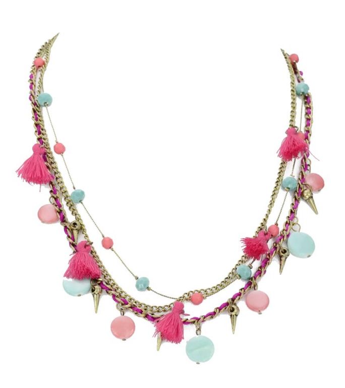 COLLAR 3V. PASTIL. Y BORLAS ROSA