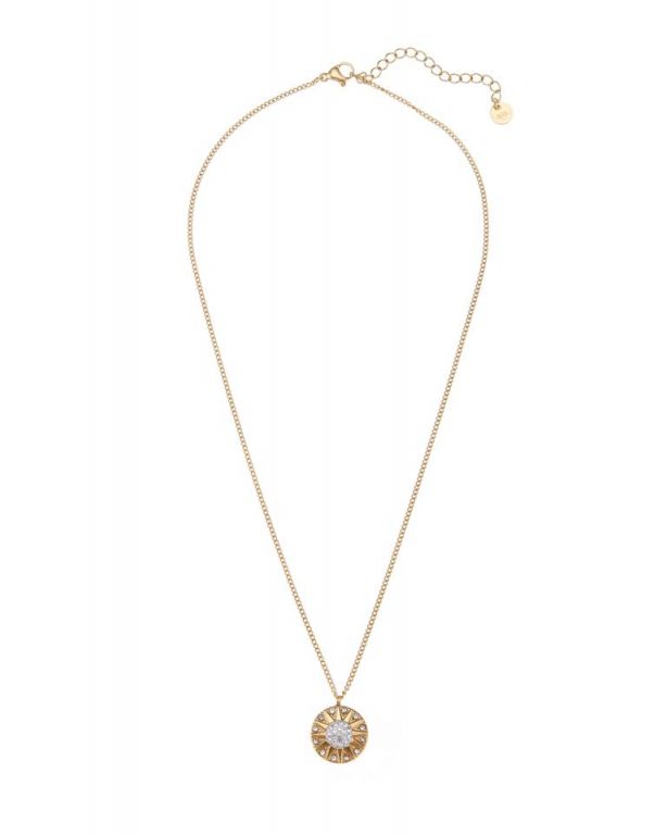 GARGANTILLA ACERO CIRCULO SOLAR BLANCO DORADO